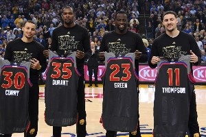 當(dāng)賽季,勇士季后賽16勝1負(fù),3個(gè)4比0殺出西部,總決賽4比1紳士橫掃騎士。